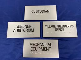 Room identification signs for your office or building that comply with federal law governing the Americans with Disability Act—no problem! These signs even include the Braille translation required by law.